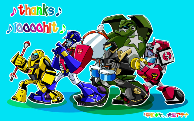 TFアニメイテッド(日本未放映)のオートボッツの鼓笛隊だそうです。 思わずFPMのMars Forever(ルーニーのマービンをネタにした,Grooviesで放映された曲。ネットで知りました。)を口ずさんでしまいました。あの曲ピコピコ音が入るのに。でも、いい曲です。 |